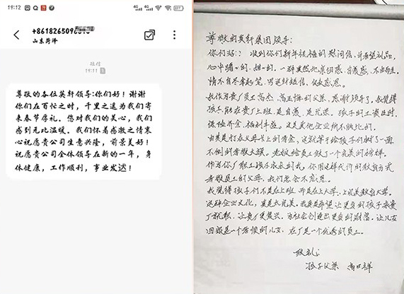 Every year, when the filial piety benefits arrives, we always receive many heartfelt messages from employees’ family members. Though brief, these notes carry profound gratitude and remind us of the vital role families play. Let us take a look at their words in heart: