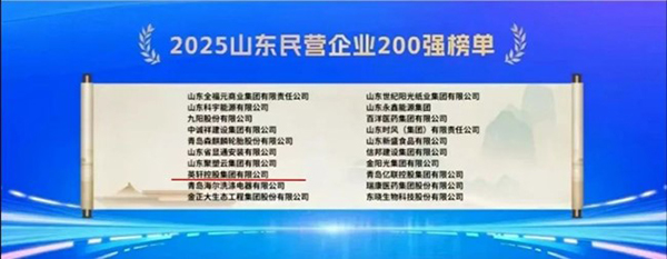 8月19日,2025山东民营企业百强系列榜单正式发布。英轩控股集团有限公司凭借卓越的综合实力与稳健的市场表现,成功入选“2025山东民营企业200强”榜单。