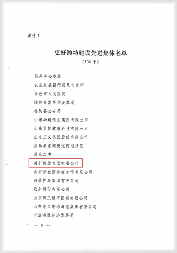 荣誉既是肯定,也是鞭策。下步,英轩集团将以此为新的起点,在上级党委、政府的坚强领导下,勇担使命、攻坚克难,奋力谱写集团高质量发展的新篇章,为建设更好潍坊贡献更加坚实的英轩力量。